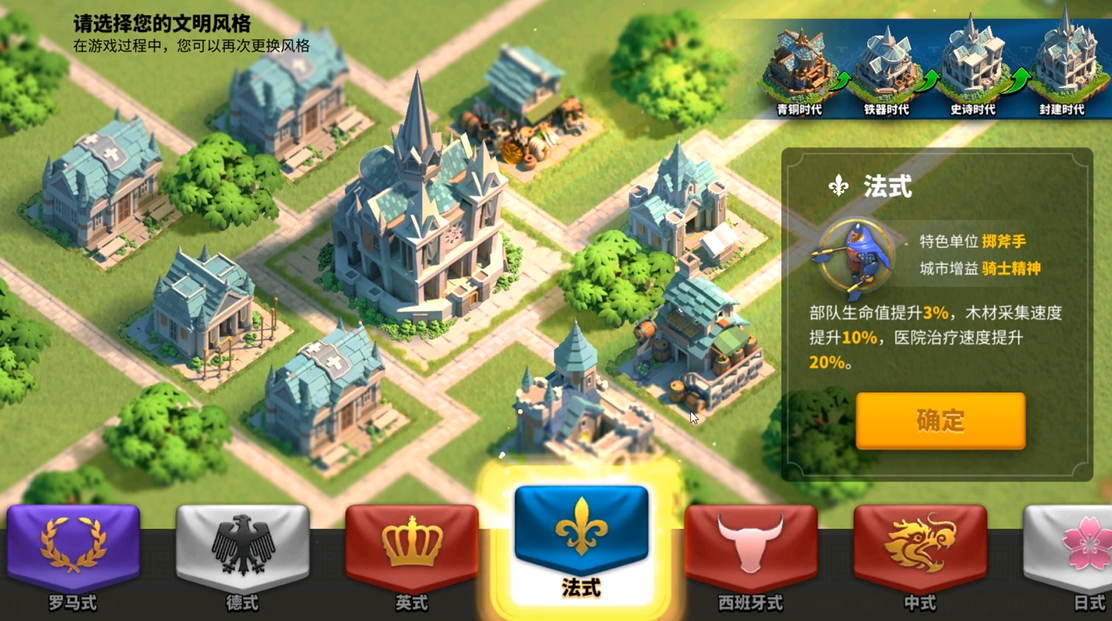 法兰西文明是步兵玩家的次优选择,其核心增益为部队生命值提升3%和医院治疗速度提升20%。生命值加成虽不如防御力直接,但能有效提高步兵的持久战能力,尤其在野战和消耗战中表现显著。医院治疗速度加成则大幅降低战损恢复成本,适合频繁参与战斗的玩家。法兰西文明的综合性能使其成为中后期步兵玩家的热门选择,尤其在资源充足且注重持续作战的玩法中更具优势。