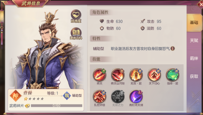 曹操的核心优势在于他的怒气技能,不仅能降低敌方全体的攻击和防御,还能叠加减伤效果,非常适合持久战。在站位上,通常把他放在后排保护起来,前排搭配曹仁或夏侯惇这类坦克武将,能有效吸收伤害。如果想让曹操更快释放技能,可以给他装备增加怒气恢复的战魂,比如连携加护或者怒焰灭袭,这样能让他频繁出手压制对手。