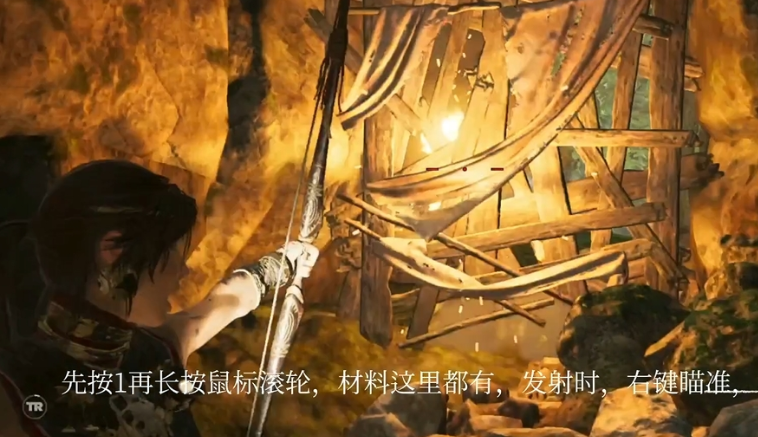 按住鼠标右键进入瞄准状态,这时候再按1键就能切换到火焰箭。如果是手柄玩家,重复按方向键上就能切换。瞄准好了之后,按住鼠标中键蓄力,蓄力完成松开就能射出去。手柄的话是按RB键射击。火焰箭射出去后会点燃目标,对付敌人或者点燃障碍物都挺好用的。