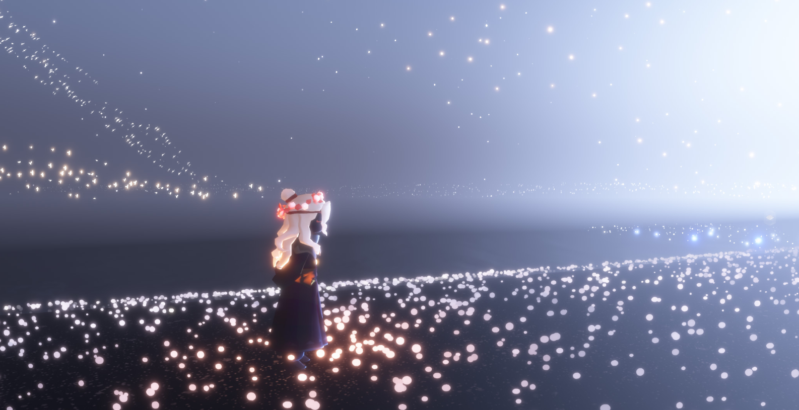 当你登上终点,也就进入了伊甸之眼。这里的主要目标不再是生存,而是将你一路携带的光之翼,奉献给那些散落在风暴中的先祖石像。这个过程是不可逆的,你会逐渐失去所有的光之翼,但无需为此担心或焦虑,因为这是通往重生的必经仪式。在奉献时,可以遵循一个简单的原则,不需要强求自己跑遍每一个角落,从相对安全的石像开始,逐步向更危险区域的石像前进。当你把光之翼都奉献出去之后,便会经历一段震撼的重生过程,跟随指引,在漫天星河中完成这次旅程的最终升华。
