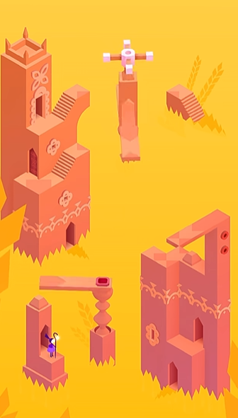 通过那扇门后,你会进入一个看似复杂的四方形平台房间。这里的解谜关键在于旋转结构。踩上可移动的平台后,通过旋转整个机关,让你的角色能够够到左边平台上的按钮。继续旋转机关,将其他区域的积木结构传递到你面前,走上去后系统会自动将你送回起始的平台。之后你需要再次操作,让平台连接到左侧带有按钮的平台上,完成这一系列精密的空间衔接后,再次与房间里的人物对话,便会触发一段过场动画,引导你前往下一个场景——宁静的稻田。