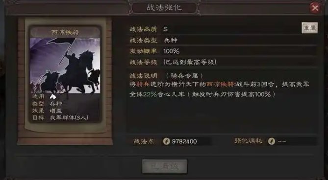 聊完基础和适性,就到了兵种系统里最让人兴奋的部分——特殊进阶兵种。这相当于给基础兵种穿上了高级装备,获得了质变般的强化效果。比如骑兵可以进阶成虎豹骑,让队伍里突击战法的发动概率显著提高,特别适合张辽、夏侯渊这类靠突击吃饭的武将;或者进阶成西凉铁骑,战斗前三回合全队获得高额的会心几率加成,暴击起来刀刀烈火,追求极限爆发。盾兵的进阶路线也很经典,藤甲兵能巨幅降低全队受到的物理伤害,堪称所有菜刀队的噩梦,但弱点就是怕火;陷阵营则能同时提升全队的武力和统率属性,并在前三回合提供稳定的急救恢复效果,攻防一体非常全面。