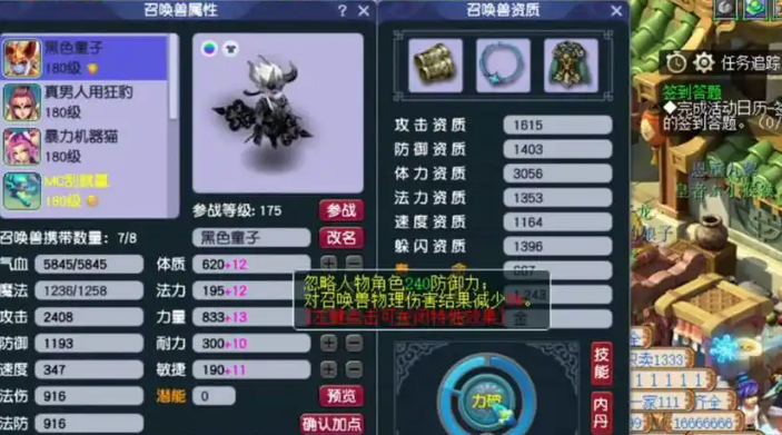 特性本身种类繁多,不同的特性适合不同定位的宝宝,所以洗之前一定要想清楚你的宝宝是干什么用的。比如说,如果是用于日常任务和活动的攻宠,争锋这种能提升对主怪伤害的特性就非常实用;而如果是挑战高难度任务和BOSS的血攻宝宝,逆境特性可以在队伍被封印时提供抵抗效果,增强生存能力,易怒特性则能在宝宝受到伤害时提升输出,适合持久战。对于全力加点的暴力攻宠,力破特性可以直接增加伤害结果,是追求极限输出的选择;对于法宠来说,顺势、瞬法这类特性则能显著提升法术爆发的效果。先明确宝宝的核心用途,再确定目标特性的大方向,这样洗起来才不会盲目。