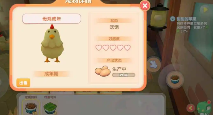 把小鸡接回家后,照顾它们的日常工作就正式开始了。饲养的核心是使用稻米进行每日投喂,确保小鸡处于饱腹状态,一只饥饿的小鸡是不会为你生产鸡蛋的。除了喂食,你还需要时常使用毛刷工具为小鸡梳理毛发,这个简单的互动可以显著提升小鸡对你的好感度。好感度的高低直接影响着小动物的健康和生产积极性。从一只叽叽喳喳的小鸡幼崽成长为能够下蛋的成年母鸡,大约需要两小时的成长时间,期间你需要保持耐心和细心的照料。