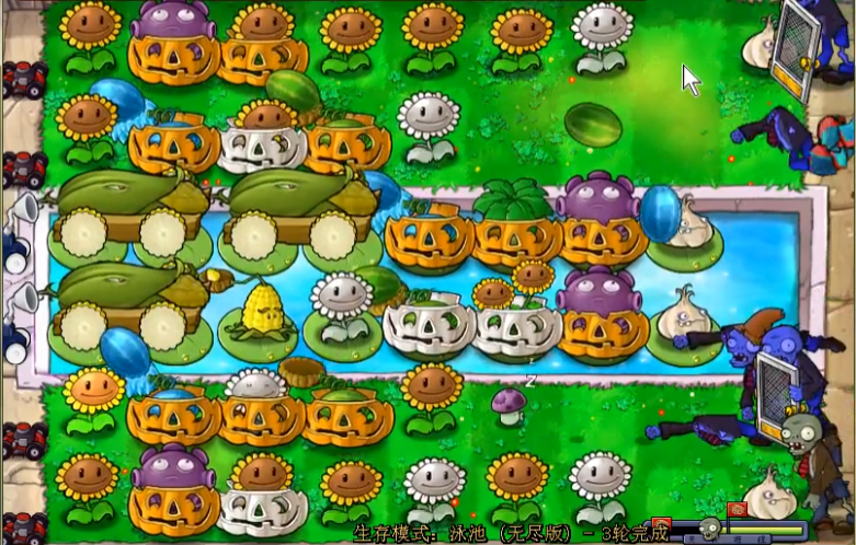 开局运营是奠定胜局的基础,首要任务是快速建立阳光经济。游戏一开始不要急着种植攻击型植物,优先在泳池地图的第3列和第4列种满至少两排向日葵,第一株向日葵最好在游戏开始后的第7秒就种下。陆地的第1列和第2列先留作缓冲带,用土豆雷或窝瓜这类廉价的一次性植物解决早期零散僵尸,为向日葵阵容成型争取时间。记住一个黄金法则,在阳光储备没有达到2000点左右之前,尽量不要开始大规模部署主力输出植物,前期每多存100阳光,后期就多一分从容。