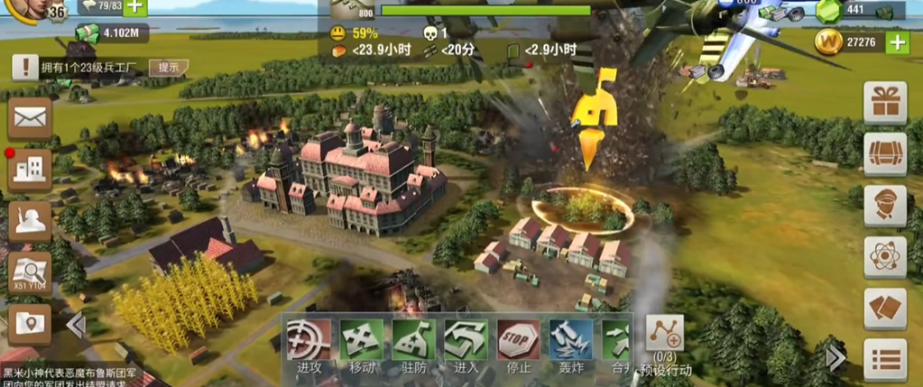 攻打寇城主要采用掠夺和征服两种作战方式。掠夺战成功后可以获得除黄金外的各类资源,征服战则能获取包括黄金在内的全部资源。由于倭寇城市没有城墙防御,建议优先选择征服倭寇城市以获得更高收益。10级寇城的标准攻打配置包括300-500辆运输卡车作为后勤保障,1侦查、1歼击、1轰炸、1骑兵、1轻坦、1重坦、1装甲组成炮灰部队,11000突击兵和4000火箭兵作为主力部队。作战时需要精确控制各兵种的行动顺序,第一回合除歼击机和轰炸机外全部前进,第二回合全体待机,通过侦查机压制敌方歼击机,利用突击兵在两回合内消灭敌方轰炸机。
