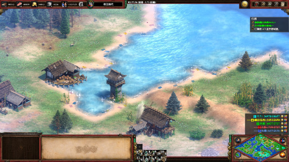 开局阶段需优先采集木材和食物,利用日本农民工作效率优势快速建造伐木场与磨坊,封建时代初期即可训练步兵配合箭塔形成压制。经济调配上需注意平衡资源分配,避免因过度投入军事导致帝王时代升级滞后,同时合理利用渔船补充食物来源。