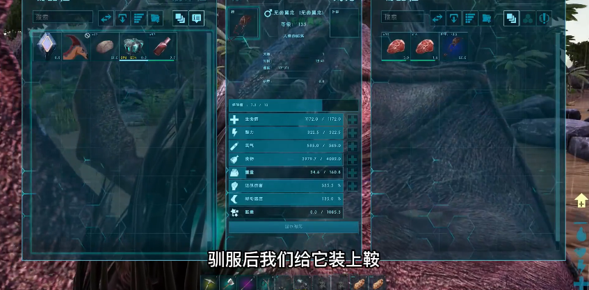 推荐使用弹弓或麻醉箭,低等级翼龙通常只需少量麻醉箭即可昏迷,高等级个体则需要更多。若翼龙在空中盘旋,可使用流星锤限制其行动后再进行击晕。击晕后需及时打开翼龙的物品栏,放入准备好的食物,并确保其眩晕值不会归零,否则驯服过程将中断。在此期间,玩家需注意周围环境,避免其他生物干扰或攻击昏迷中的翼龙。