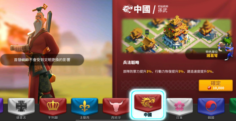 别忘了联盟协作的重要性!如果所在联盟需要特定文明互补,比如缺少骑兵支援时选德国,或者需要步兵扛伤害时选罗马,团队配合往往比个人优势更重要。后期还能通过文明转换功能调整方向,所以开局选错也不用慌,重点还是多和盟友沟通,一起制定策略。