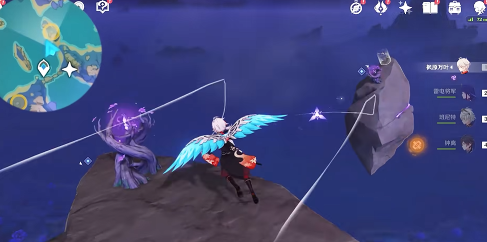 完成清籁逐雷记后,就可以着手解锁传送点了。天云峠的两个传送锚点都位于高空,需要借助特殊机关才能到达。从七天神像右边的传送锚点出发,爬到山顶会发现一个相位之门。站在门中间就能被传送到高空平台,这是到达天上锚点的关键一步。
