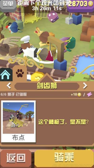 驯服后的狮子可安置于动物园栖息地,通过养成提升其任务效率。不同品种的狮子具备独特属性,例如绿植狮虽外观温和但仍需投喂肉类维持状态。建议优先升级栖息地设施以提高狮子产出收益,同时吸引更多游客参观。若未能一次性驯服,可反复进入稀树草原5地图刷取目标品种,并利用金币加速栖息地等级提升以解锁高阶狮子。