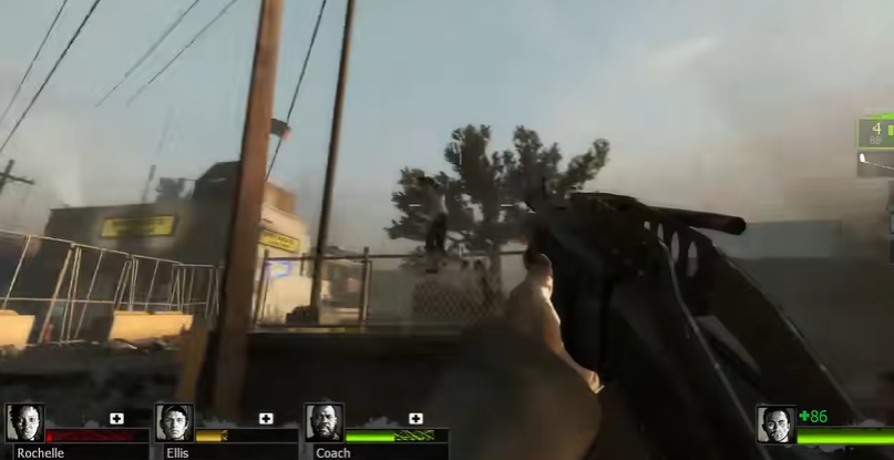 武器店二楼走廊尽头有一扇门,炸开油罐车后那条路比较明显,地上会有爆炸痕迹。安全屋就在箭头指向的位置,通常是一栋亮着绿灯的建筑。路上如果遇到尸潮,建议找个角落防守,别硬冲。玩家可能会卡在便利店附近,其实拿到可乐后不用原路返回。直接从便利店跳回武器店二楼更省时间,注意别摔伤。交完可乐后,武器店老板会触发剧情动画,这时候可以稍微放松一下,但别离队友太远,避免被特感偷袭。