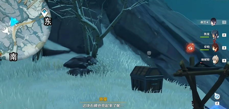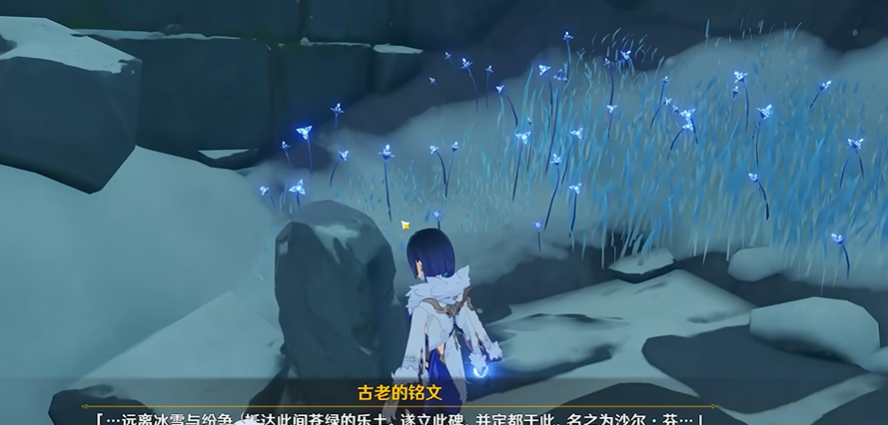 八个石碑分布在雪山不同区域,第一个在覆雪之路传送点东侧平台,第二个藏在三个匣子任务的最终密室里。第三个位于星萤洞窟西南方向,需要深赤之石破冰才能互动。第四个在眠龙谷左侧传送点附近,解谜后往下层走就能找到。第五个在星荧洞窟左侧方形场地,破解机关后躲在左下角石墙下。