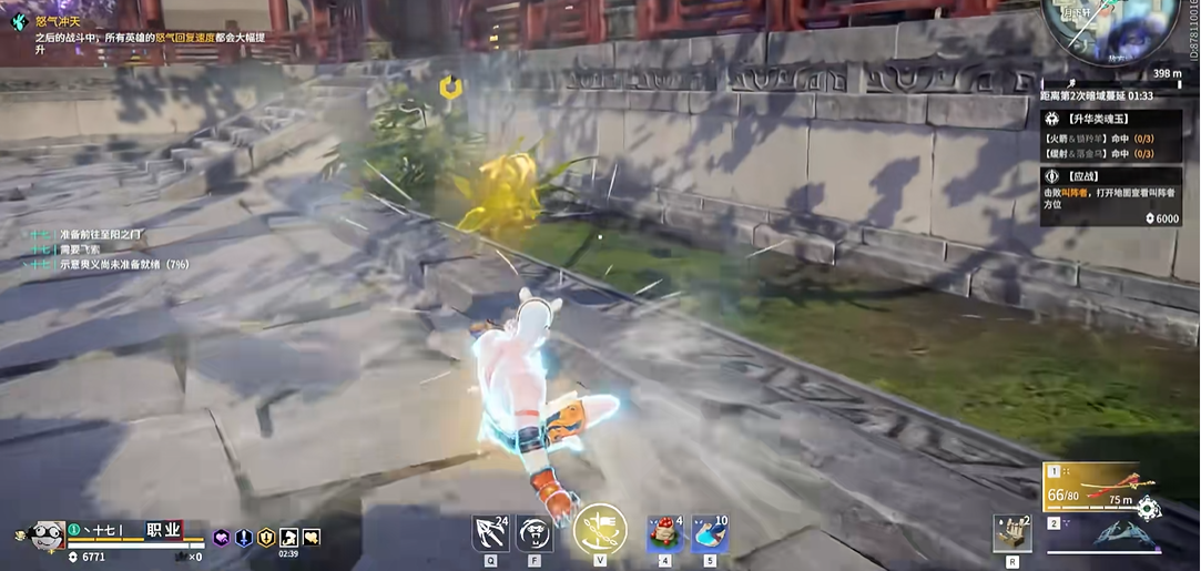 操作细节上,视角方向决定位移路径。壁击在攀爬时调整视角至目标方向,松开攻击键后角色会沿视野飞出;钩锁飞行中平A能延长距离,但需预判落点。非战斗状态下,切空手状态使用钩锁攻击可最大化飞行距离。被追击时,阔刀滑铲接左键平A的飞跃能快速拉开距离,长枪定海针·腾云式配合追风技能可实现高速滞空位移,适合跨越障碍。武器特性决定了平A赶路的适用场景,例如复杂地形优先选择壁击或滑铲组合。