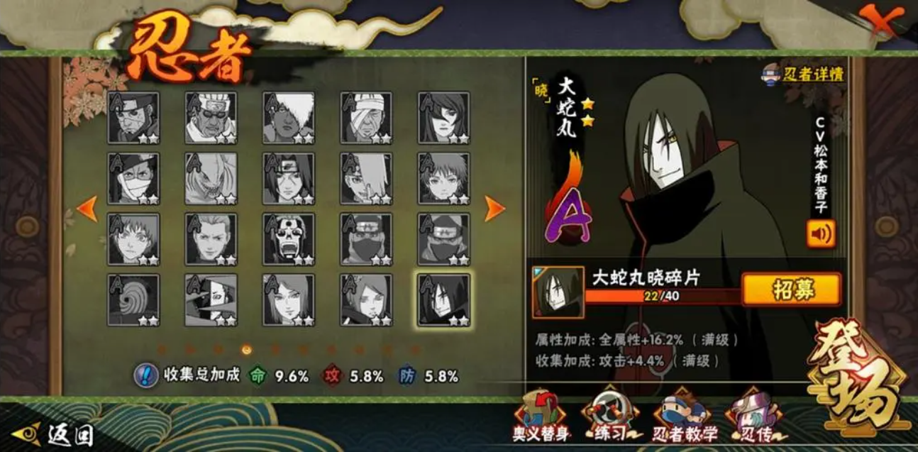 高级招募是获取当期新S忍的主流方式,需消耗高级招募券或金币,招募券可通过金币直接购买。新S忍上架时会开启专属招募池,同步推出高招返利活动,抽满100次即可领取额外碎片奖励,这是性价比最高的抽卡节点。高级招募存在固定保底机制,每50抽必出5片S忍碎片,累计300抽左右可稳定集齐100片碎片招募整卡,抽取过程中还能顺带获取同期上架的A级忍者碎片。抽卡前需提前囤积金币,避免中途资源不足,同时可根据自身VIP等级购买卡池商店的碎片礼包,进一步补充碎片数量。