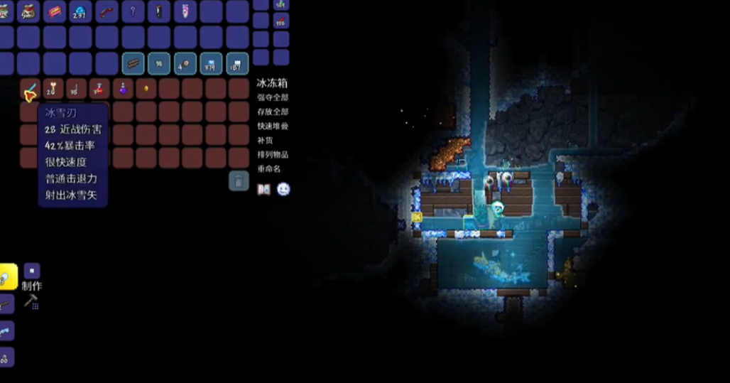 寒冰之刃是雪地生物群落的专属武器,在冰雪宝箱中可以找到。它的攻击附带冰冻效果,能有效控制敌人,尤其适合对付成群的小怪。虽然伤害不如后期的魔化之刃,但前期用起来已经非常舒服了。群星之怒是空岛宝箱中的稀有武器,使用重力药水可以轻松到达空岛。这把武器能召唤星星攻击敌人,对付飞行单位特别有效。不过要注意空岛的鹰身女妖,它们可能会干扰你的探索。