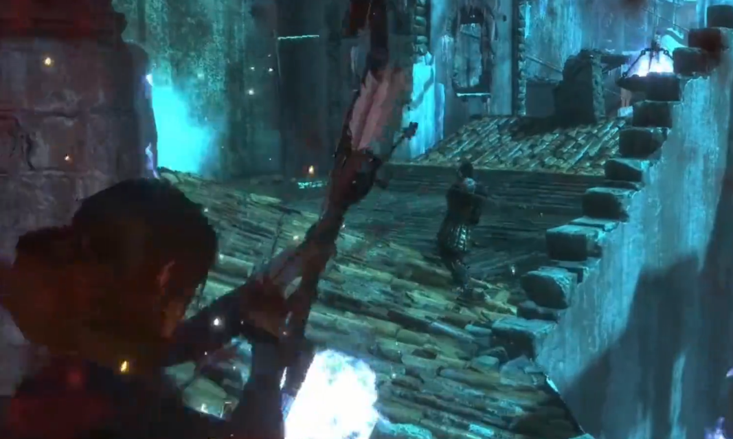 首先需要利用绳索箭拉动场景中的船只,将其拖拽至合适位置作为跳跃平台。关键操作在于瞄准船体特定连接点,确保绳索固定后能通过冰斧攀爬移动。环境中的冰墙和可移动物体是解谜要素,需观察冷凝现象与风向对船只位置的影响。位于高处的投石机需要先清理下方冰块障碍,但冰块被金属结构阻挡时,需从侧面绕行至二层平台。此处需利用场景中的滑轮装置,用绳索箭连接滑轮与金属结构形成临时杠杆,破坏阻挡物后返回投石机位置发射火球。注意躲避敌方弓箭手干扰,优先清除威胁再操作机关。