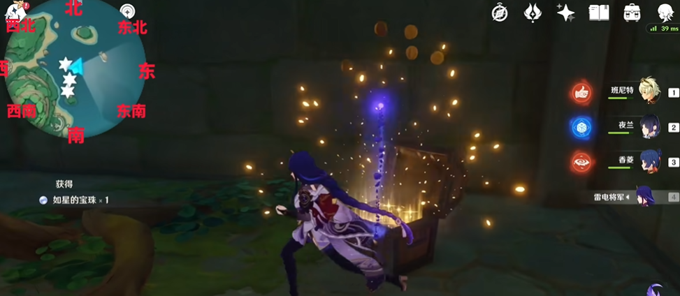 集齐三颗宝珠后,返回提交宝珠的壁画房间。靠近墙壁交互,将宝珠嵌入壁画中,星星图案就会亮起。这时会触发一段动画,三只雷灵从壁画中飞出,同时获得一个精致的宝箱作为奖励。接下来需要跟随雷灵找到它们最终的停留点,那里还有一个华丽的宝箱等着你开启。